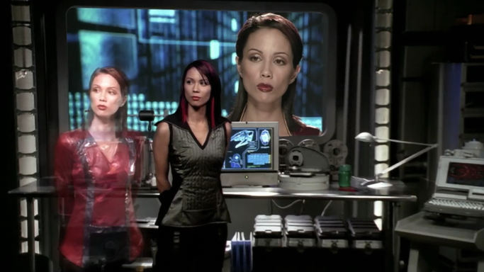 Tyr (Teal'c) Anasazi is a funny one. It amused me no end whenever he presented himself as auditioning for a role in Shakespeare, that was until he cut off his hair for the final season and seemingly got kicked. At least we had Telemachus Rhadé to take his place... That leaves us with Trance and Rommy. Trance, unlike Harper, is someone we get to see grow up, and regress in a way. It was amusing when she swapped places with her future self, coming in all confident and kicking butt; I could see Kevin Sorbo (Dylan Hunt) struggling with her appearing this way at first, but that persona seemed to be short-lived after an episode or two. She turned back into her old-self, but thankfully kept the new attire.